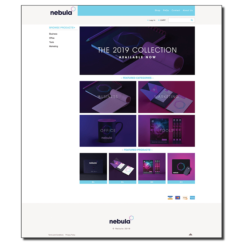 Nebula offers a fun and user-friendly design with easy to navigate sidebar menus following the user to every page to ensure quick access to all your product categories. Built-in header accents offer a pop of your brand color on every page, drawing attention to the upper additional content menu.